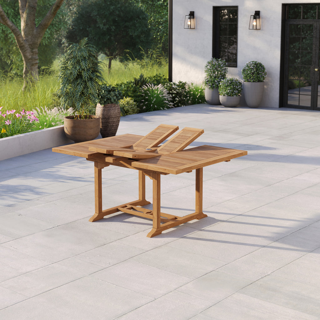 Designed to adapt effortlessly to your outdoor lifestyle, this Teak Square to Rectangle Extending Dining Set includes a solid teak double-leaf table that extends smoothly from a compact 120cm square to a generous 170cm rectangle, allowing you to choose between three practical sizes depending on your needs.
